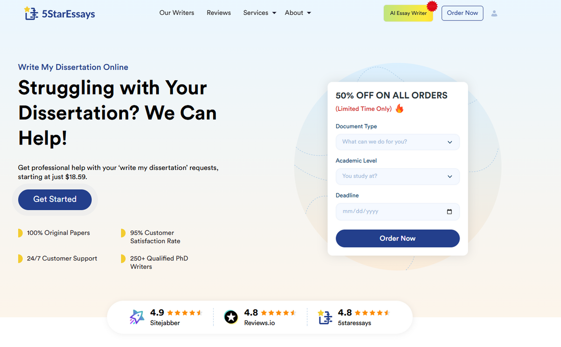 5StarEssays.com stands out for its team of highly experienced writers who specialize in academic dissertations. They deliver high-quality work within tight deadlines, offering thorough research, plagiarism-free guarantees, and customizable options. Their fast turnaround times and affordable pricing make them a trusted choice for students worldwide.